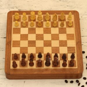 Hand Crafted Acacia and Haldu Wood Chess Set, 'Idle Hours'