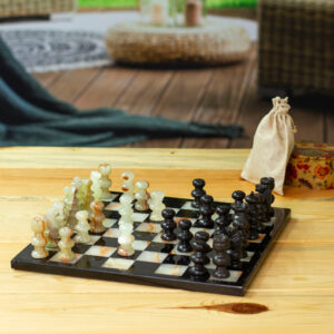 Black and White Marble Chess Set from India, 'Royal Grandeur'