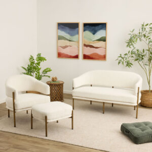 Wonderfully cute and cozy, our retro-modern Rylan seating collection pairs faux-sherpa upholstery with sleek and stylish metal legs. Standalone seats that coordinate beautifully in small spaces, each is upholstered in a selection of contemporary colors with a nubby texture that looks as good as it feels.