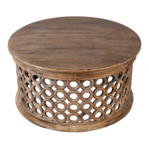 Accent your room with the beautiful tones and texture of the Seething coffee table, made from mango wood with a rich brown finish. Handcrafted by artisans in India, its sleek, round top sits on a carved-lattice base made up of circle cutouts. Full of global-boho chic, it complements a range of decor and can be…