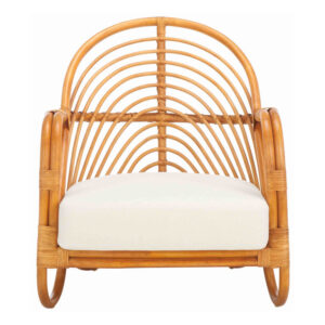 Our low-profile rattan accent chair has an in-demand design showcasing natural materials and contemporary curves. Brought to you from Indonesia, this globally inspired seat stands out with an airy, arched back, comfortable armrests and a plush, white linen seat. Bohemian decor for a bedroom, home office or living room, it elevates everyday relaxing with our…