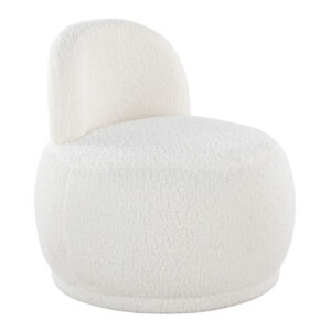 This cool and contemporary chair stands out with a round seat and curved, minimalist backrest. It’s fully upholstered in a choice of soothing faux-shearling fabric options to add on-trend texture to your space. We imagine our Opal accent chair styled in a playroom to inspire hours of cozy reading, near your closet as a perch…