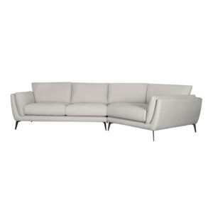 Tuck into this perfectly plush right-facing sectional sofa for an irresistibly comfy experience. Comprised of a classic love seat and a deep, angled chaise that begs to be curled up in, it’s crafted from sturdy solid wood, covered in easy-to-clean, neutral oat-hued fabric and outfitted with splayed walnut-finished legs for a dash of chic style.