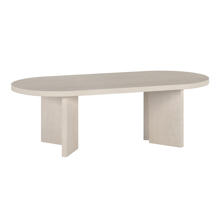 Stylish in its simplicity, the Amberley modern coffee table contrasts the smooth curves of a thick oval surface with the clean-lined angles of bold pedestal legs. This transitional table is finished in classic black, dark charcoal or light antique gray to complement your contemporary setting. A geometric statement piece with an inviting boho charm, it’s a welcoming update for Scandi and farmhouse decor in family rooms of all sizes.