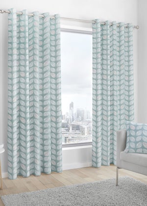 Add relaxing prints to your home with the Fusion Delft eyelet curtains, featuring a modern hand-drawn leaf design. In a soft shade of duck egg blue, these 100% cotton curtains come with a light-filtering lining for a calming feel. Complete the look with the matching Delft cushion.