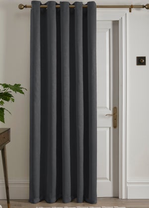 A simple, classic, semi-plain set of dim-out eyelet door panel curtain with matching cushions that will suit any room in the house. This panel curtain feature a triple-woven fabric to effectively reduce the light levels going through the curtain, making them perfect for the summer. Additionally in this panel curtain help keep the heat in during the cold winter months. The curtains have an eyelet heading style that ensures the curtains are easy to hang and have a lovely drape.