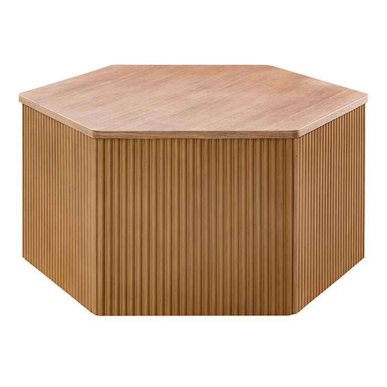 Pedro Natural Wood Fluted Hexagon Block Coffee Table
